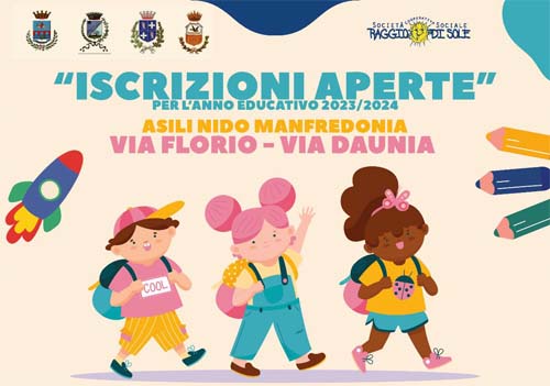 "Si rende noto che le iscrizioni al servizio di Asilo Nido, per l'anno educativo 2023/2024, a favore di bambini da 3 mesi a 3 anni di età , sono a cura del soggetto gestore del servizio "Società  Cooperativa Sociale Raggio di Sole".
