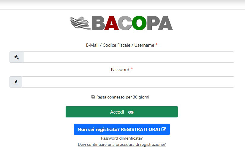 In relazione al bando in oggetto, si precisa che coloro che sono già iscritti alla piattaforma https:// bacopa.it, (per l’accesso ad altre precedenti istanze) devono utilizzare lo stesso account da loro già precedentemente creato e inserito in piattaforma, pena la impossibilità di proseguire nella istanza.